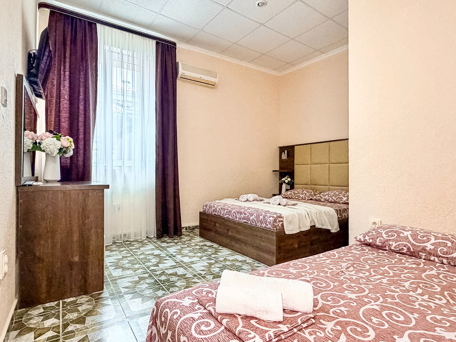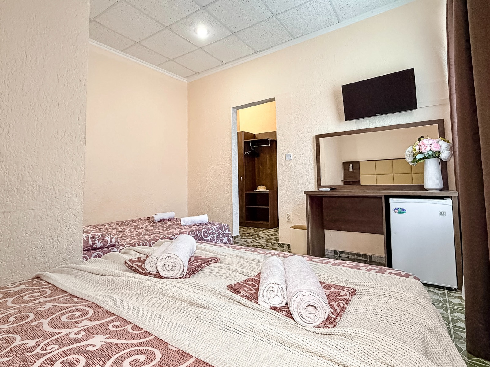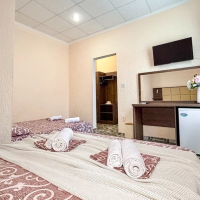 - Современные оборудованные номера: кондиционер, холодильник, телевизор, душ, с/у;