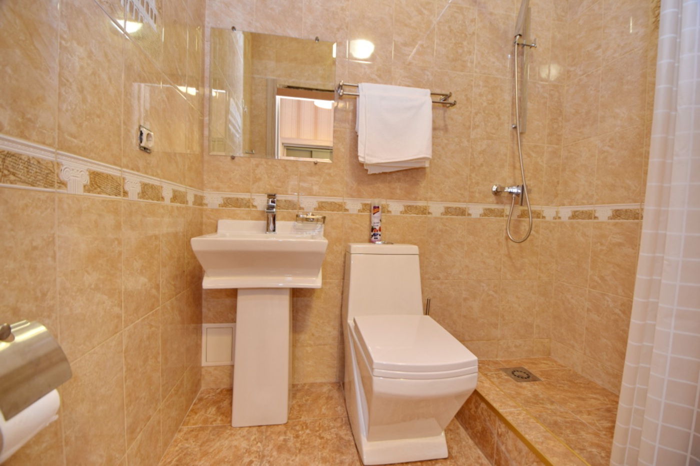 - Все номера с качественным, ультрасовременным ремонтом. Все они оснащены необходимой мебелью, кондиционером, телевизором, холодильником, сейфом и личной ванной комнатой с душем и феном