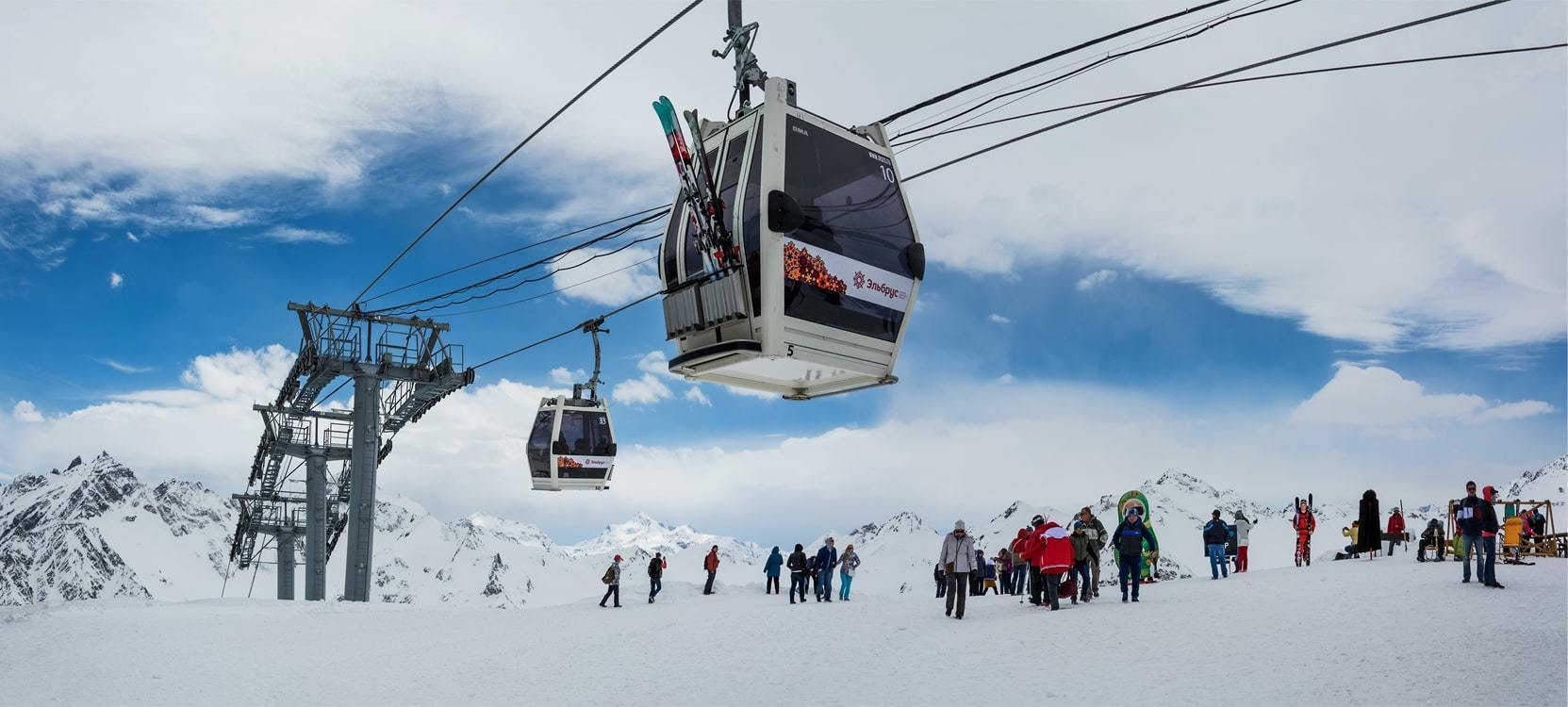 На склоны Эльбруса можно подняться по канатным дорогам: 1-й подъем на высоту 3000 м. станция «Кругозор», 2-й подъем на высоту 3500 м. станция «Мир», 3-й подъем на высоту 3800 м. станция «Гара-Баши». Подъемы осуществляются по канатным дорогам гондольного типа (современные и безопасные кабинки на 6-8 человек). Добравшись до вершины вы сможете сделать массу уникальных фотографий и покатать на снегоходах. Время подъема на гору Эльбрус до точки «Гора-Баши» занимает всего 20-30 минут.